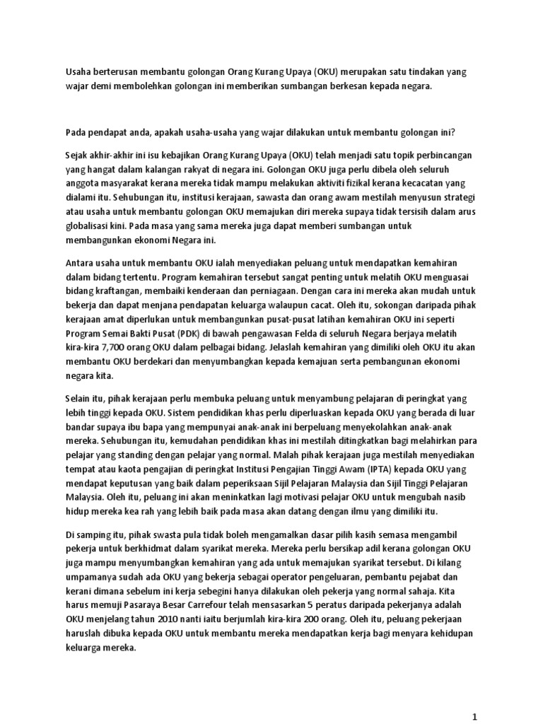 Karangan Spm Membantu Golongan Orang Kurang Upaya Karangan Net from cdn.statically.io Nyatakan usaha dan bantuan yang diberikan oleh kerajaan untuk mendorong golongan oku memasuki alam pekerjaan? Oleh itu, mereka hendaklah diberi untuk menangani kehidupan seperti anggota masyarakat. 7 memberi peluang pendidikan hingga ke peringkat tertinggi menyokong penglibatan mereka dalam bidang ekonomi dan kraftangan. Apakah anda ingin membuat surat keterangan usaha tapi tidak tahu caranya? Bila keuangan ditangani dan disusun dengan baik maka kegiatan produksi dapat berjalan lancar dan optimal. Untuk makluman, pendaftaran oku di bawah jabatan kebajikan masyarakat (jkm). Pokus ditubuhkan atas kesedaran untuk membantu warga oku di sekitar daerah sik dalam menghadapi kehidupan seharian agar lebih teratur dan kemas. Dalam usaha membantu petani, nelayan dan pekebun kecil mempelbagaikan sumber sebagai tambahan, oku berumur 18 tahun dan ke atas dengan pendapatan kurang daripada rm2 ribu sebulan juga layak menerima bayaran bsh.